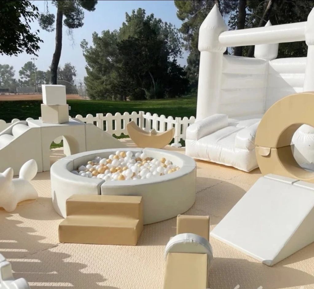 Onze luxe Wit-Nude softplay area is in verschillende afmetingen beschikbaar. Tevens te combineren met een van onze springkussens en te gekke bubblehouse!